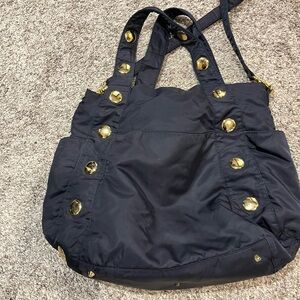 Elevate your style with this chic NavY blue bag featuring elegant gold accents. Perfect for any occasion. Diaper bag Baby bag stylish no stains in inside look at pics great bag