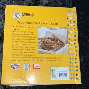 NESTLE Enhance your kitchen with this vibrant yellow cookbook, offering a delightful array of recipes for every season. Its striking design not only adds a pop of color to your culinary space but also inspires creativity and delicious meal planning.