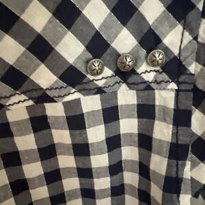 Small decorative snaps on both pockets, 4 on each sleeve, 3 on side of back yoke