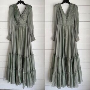 NET MAC DUGGAL FAUX WRAP LONG SLEEVE TIERED GOWN SIZE 6