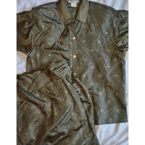 NET Sz 14 Vtg 100% Silk Top & Wrap Skirt Set Outfit Hearts & X's Novelty