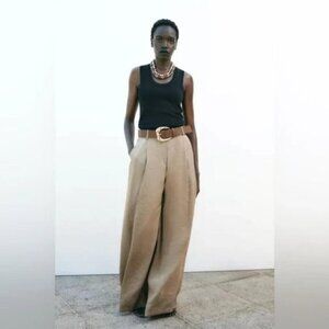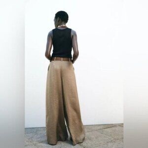 Step out in style with these elegant tan wide-leg pants. Perfect for any occasion, these pants offer a chic and comfortable fit.