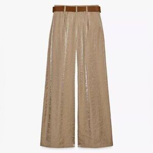 NET ZARA SATIN WIDE-LEG TROUSERS WITH BELT