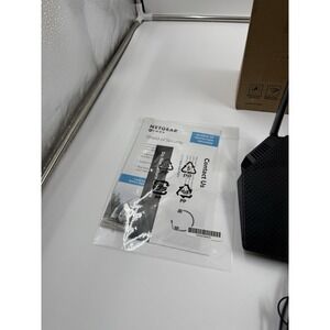 The NETGEAR AX1800 1000 Mbps 4 Port Wireless Router (R6700AX-1AZNAS) is a black router designed for home networking and connectivity. With a maximum LAN data rate of 1000 Mbps and a maximum wireless data rate of 1800 Mbps, it offers fast and reliable internet access for PCs and other devices. This router features VPN capabilities, tri-band and dual-band connectivity, and is ideal for gaming and other bandwidth-intensive activities. It has four Ethernet LAN ports for wired connections and is designed to provide a secure and stable network connection for your home or small office setup.