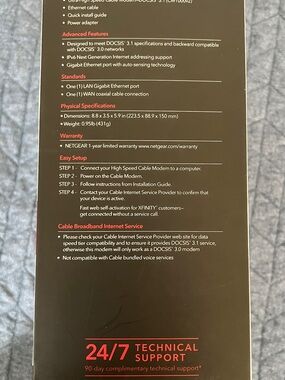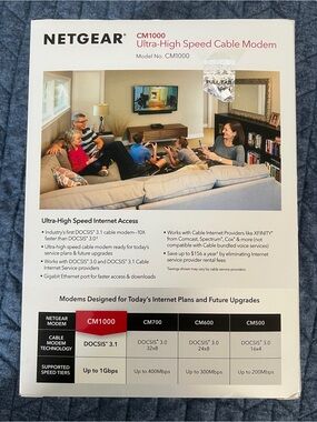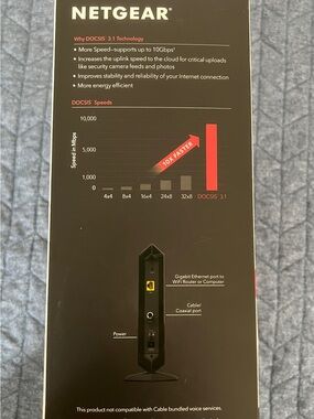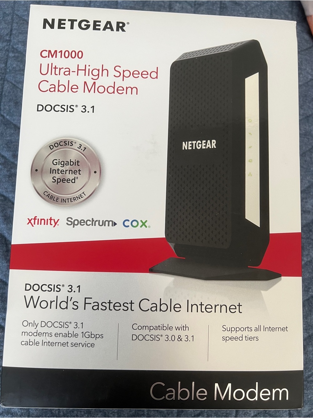 High-performance DOCSIS 3.1 modem. Designed for gigabit cable internet. Vertical tower design with vented surface. Front status LEDs for easy monitoring. Compatible with major cable providers.