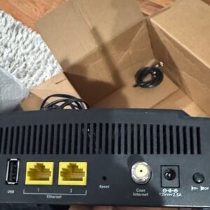 Enhance your network with this NETGEAR router. Dual antennas for strong signal. Sleek black design. Sold as is.