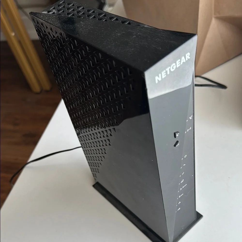 Enhance your network with the NETGEAR black router, designed for seamless connectivity and high-speed performance. NETGEAR Dual Broadband 5G Router gently used condition.
