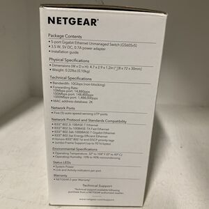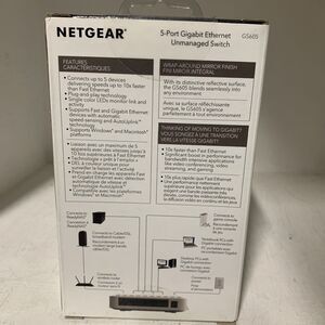 NETGEAR GS605NA 5-Port Gigabit Ethernet Unmanaged Switch. Comes with original box and AC adapter. Clean and works great. Message me with any questions. No returns.