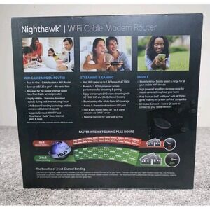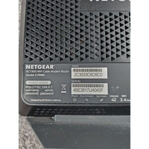 The NETGEAR NIGHTHAWK AC1900 WiFi Cable Modem Router Model# C7000 is a high-speed wireless router designed to provide reliable and fast internet connectivity. With a maximum LAN data rate of 1000 Mbps and a maximum wireless data rate of 1900 Mbps, this router is suitable for streaming, gaming, and other bandwidth-intensive activities. Featuring a sleek black design, dual-band connectivity, and four LAN ports, this NETGEAR Nighthawk AC1900 model is an excellent choice for home networking and connectivity needs.