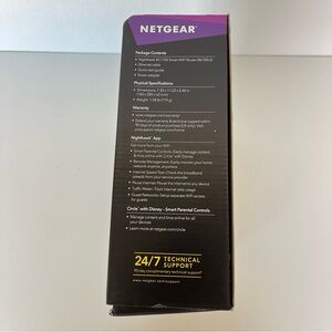 Netgear Smart WiFi Router in black. Recommended for up to 25 devices. Reliably stream videos, play games, surf the internet, and connect smart home devices. Supports WPA2 wireless security protocols. Includes Guest Wi-Fi access, DOS, Firewall, VPN, etc.