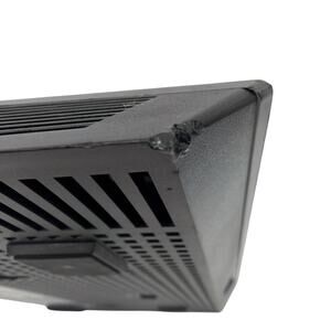 Pre-owned NETGEAR Nighthawk AC1900 Smart WiFi Router, model R7000, in black. Unit shows cosmetic wear including a chipped rear/bottom corner and some surface scuffs and marks but no obvious cracks to the main housing. Router is guaranteed to be fully functional and comes with the OEM NETGEAR power adapter and an Ethernet cable as shown. Tested working and reset.