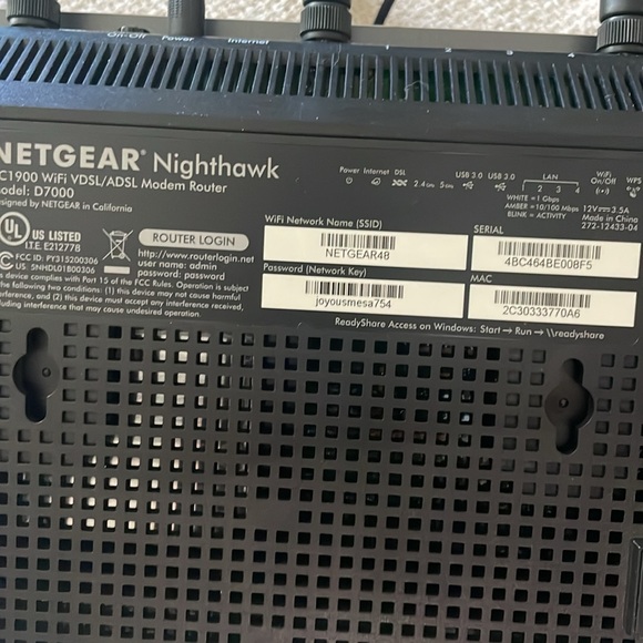 NETGEAR Nighthawk AC1900 Smart Wi-Fi Wireless Router R7000 4 LAN Port