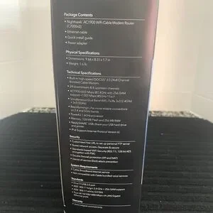 The NETGEAR Nighthawk AC1900 4 Wireless-Wi-Fi 802.11ac Router (C7000-100NAS) is a high-performance router designed for home networking and connectivity. With four wireless Lan ports and a sleek black design, this router offers fast and reliable internet access for multiple devices. The Netgear Nighthawk AC1900 model is known for its strong connectivity and is suitable for homes with multiple users and devices. Its compact size makes it easy to set up in any room, providing a strong Wi-Fi signal throughout the space.