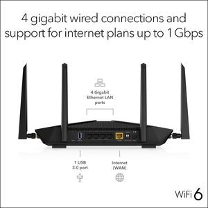 NETGEAR Nighthawk AX3600 WiFi 6 Router, 3.45Gbps (RAX41) AX5