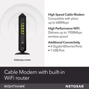 NETGEAR Nighthawk Cable Modem WiFi Router AC1900 Built-In DOCSIS