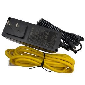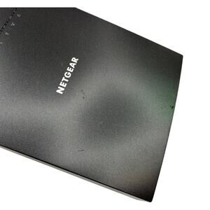 Pre-owned NETGEAR Nighthawk X6S EX8000 AC3000 tri-band WiFi range extender in black, tested and fully functional. Unit shows moderate cosmetic wear including visible surface scratches and scuffs on the casing. Includes original NETGEAR 12V power adapter and a yellow Ethernet cable; no original box or printed documentation are included. Model: EX8000 AC3000 Tri-Band WiFi Mesh Range Extender.