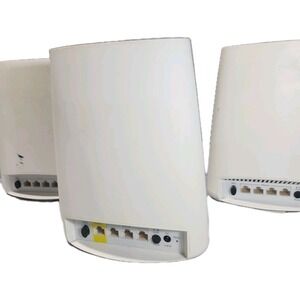 The NETGEAR Orbi RBR40 Wireless Router is a high-speed home networking system that includes 1 router and 2 satellites. With a maximum LAN data rate of 1000 Mbps, this tri-band router in white color is designed to provide seamless wireless connectivity for your PC and other devices. Featuring Ethernet ports for wired connections, the NETGEAR Orbi system is perfect for expanding your home network's coverage and ensuring a reliable connection throughout your living space.