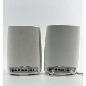 The NETGEAR Orbi RBR50 Router + RBS50 Satellite Mesh WiFi System AC3000 is a high-speed wireless router designed for home networking and connectivity. It offers a maximum LAN data rate of 1000 Mbps and a maximum wireless data rate of 3000 Mbps, ensuring a fast and reliable connection for your devices. With three Ethernet ports and compatibility with PCs, this white unit from NETGEAR provides a seamless networking experience for your home or office setup.