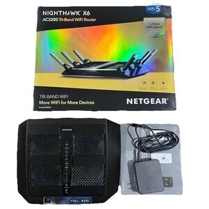 The NETGEAR R8000 3200 Mbps 5 Port Tri-Band Wireless Router is a high-performance WiFi router designed for gaming and other bandwidth-intensive activities. With a maximum LAN data rate of 3200 Mbps and a matching wireless data rate, this router ensures fast and reliable internet connectivity. Featuring five LAN ports, this router offers multiple wired Ethernet connections in addition to its wireless capabilities. Its sleek black design and compact dimensions make it suitable for a variety of home networking setups. Built by NETGEAR, a trusted brand in networking technology, the R8000 is a top choice for those looking for a powerful and versatile router for their gaming needs. Excellent like new condition!