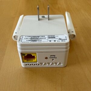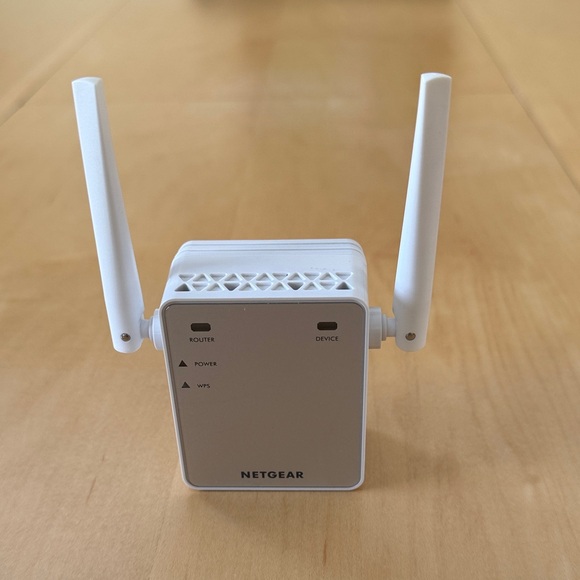 Compact NETGEAR access point with dual antennas. Boosts wireless coverage efficiently.