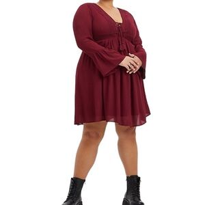 NET’S TORRID MINI GAUZE Burgundy LACE-UP SKATER DRESS SZ 1X