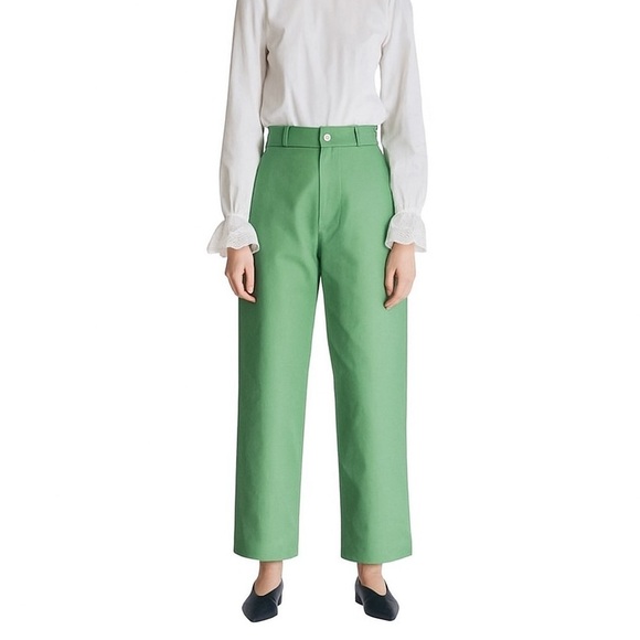 NEUL Lubdub High-Waisted Wide Leg Chino Pant NPA09008. These high waisted cotton twill chinos will brighten your wardrobe every season. Zip and button fly. NEUL is a Verona(ITALY) based contemporary womens & unisex wear from duo designers Jun & Joy, in an attempt to revamp the staples of everyday wardrobe with a bit of a twist. Size 2 = US Medium or 8 according to size chart.