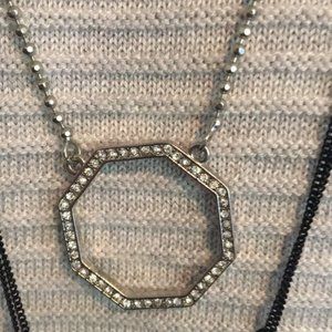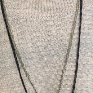 NEVADA Long Necklace Silver/Black Chain with Bling