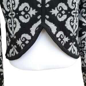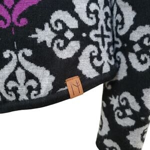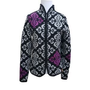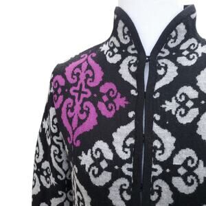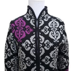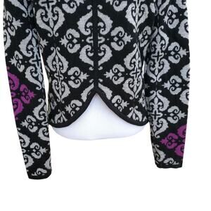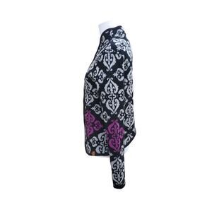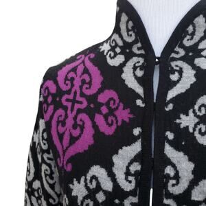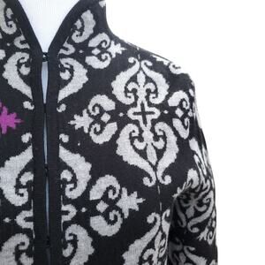 NEVE Geometric Wool Cardigan Jacket Hook Eye Notched Back Black Gray Purple Sz S