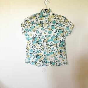 NEVER A WALLFLOWER Vicki SS Top, Yellow & Blue Floral small