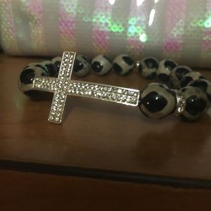 SUPER CUTE cross stretch bracelet with cheetah beads! Never been worn before!!