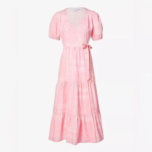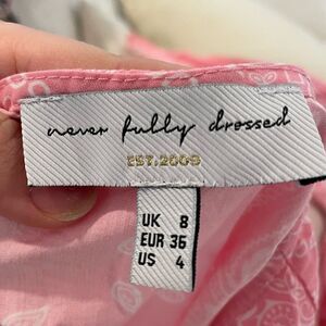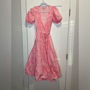 . Spun from organic cotton and cut to a calf skimming silhouette, this wrap dress is cloaked in the label's signature Paisley print and topped with a V neck. We're donning ours for when temperatures finally begin to climb. Never Fully Dressed organic cotton midi wrap dress100% organic cottonExposed self tie fastening at waistV neck, short puff sleeves, elasticated cuffs, all over paisley pattern, wrap over at front, tiered hemMachine wash cold