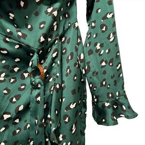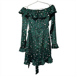 NEVER FULLY DRESSED Georgia Mini Dress - EUC - Small - green leopard - ruffles