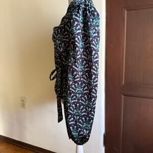 NEVER FULLY DRESSED | Navy Blue and Green Blouson Sleeve Wrap Blouse | US Size 8
