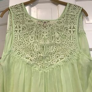 NEVER WORN CALYPSO ST. BARTH lime green sheer top with embroidery on shoulder and back