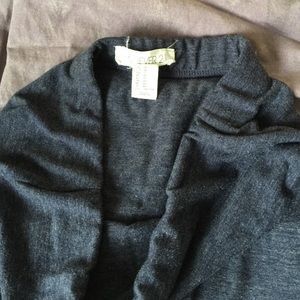 Dark blue pencil skirt. Reaches to bottom of the knee on an average height female (5'4").