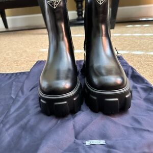 Prada Monolith Brushed Leather Boots . Size 38 . Never worn before only tried on. Comes with two Prada dust bags
