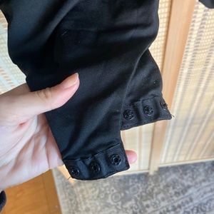 This never worn body-suit/blouse is from Princess Polly. It has a zipper on the side, a straight neckline, and beautiful, flowing sleeves. The body suit connects with 3 buttons. The back looks exactly the same as the front— same neckline. It originally retailed for $49.99.