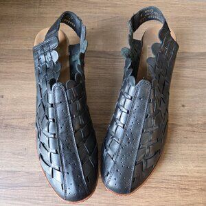 NEVER WORN RIEKER RINA ANTISTRESS BLACK GENUINE LEATHER WOVEN LOW HEEL SHOES 42