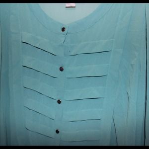 This teal shirt has never been worn and is in great condition. The ruffles and button add its own unique style.