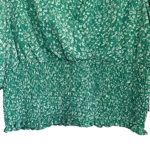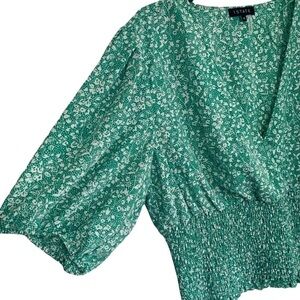 NEW 1 STATE Criss-Cross Puff Sleeve Smocked Spring Green Liberty Floral Top XL