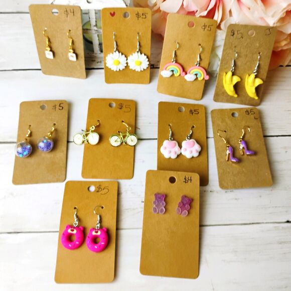 NEW 10 Novelty Earrings Lot/Bundle Flower, Gummy Bears, Donuts, Rainbow, Paws