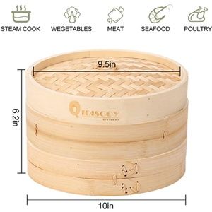 NEW 10 inch Bamboo 2 layer Steamer Basket With Lid