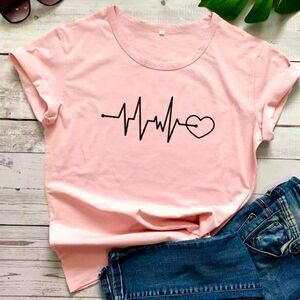 NEW! 100% Cotton Blush Pink Printed Heart EKG Short Sleeve T-Shirt