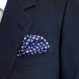NEW - 100% Silk Pocket Square - Baby Blue & Navy Polka Dots