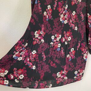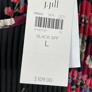 NEW $109 J Jill Wearever Womens Large Black Floral Pleated Tunic Top Shirt