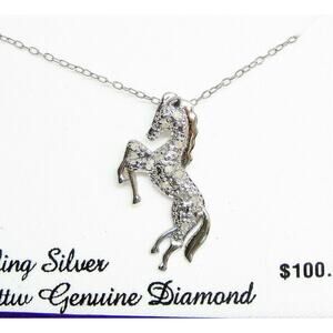 NEW 1/10ct DIAMOND .925 Silver HORSE PENDANT NECKLACE 18" Sterling Silver Chain