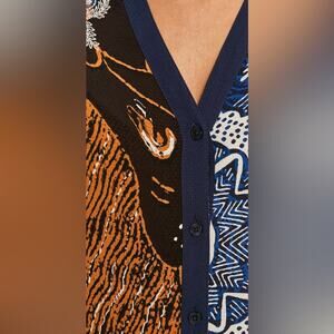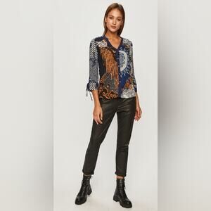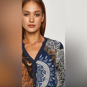 NEW $116 Designal Womens Blouse Top Size M Medium Classy Navy Neutrals Abstract