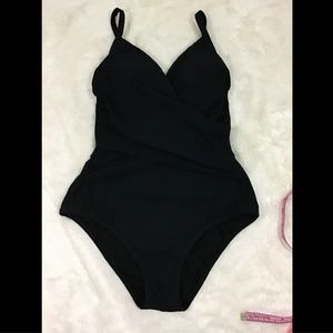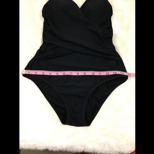 NEW $118 Profile by Gottex Tutti Frutti Black V-Neck One Piece [ SZ 6 ]