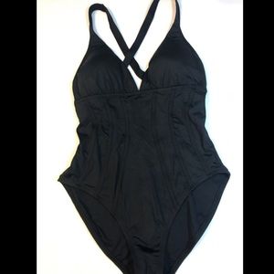 NEW $119 La Blanca Island Goddess One-Piece‎ Swimsuit Black [SZ 12 ]