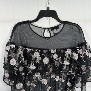 NEW $120 Alfani [ 2X ] Embroidered Ruffle Illusion Top in Black Purple #T1278